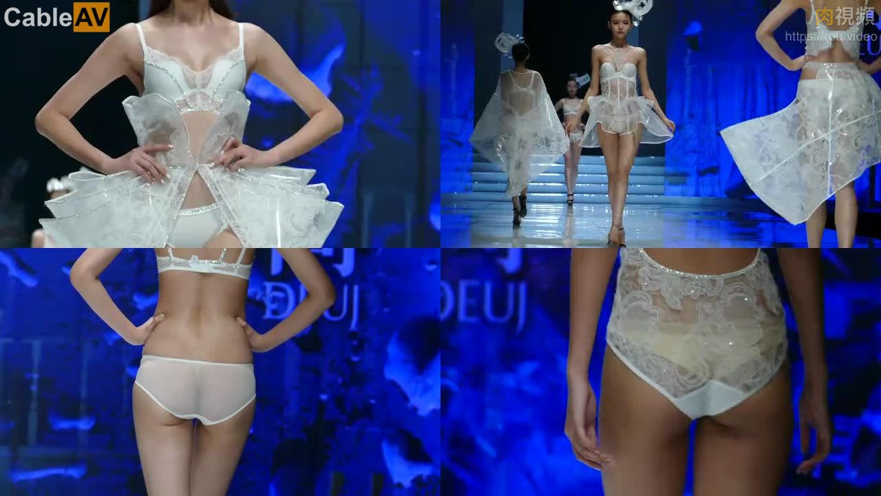 模特走秀精選 4KUHD 2018年深圳內衣秀 明簡性感高叉第四部 白色透臀蕾絲彰顯當年純潔 時尚走秀#007 China Babe hotgirl fashion swim bikini show